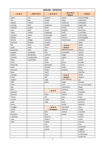 Gerund Infinitive List Teaching Resources